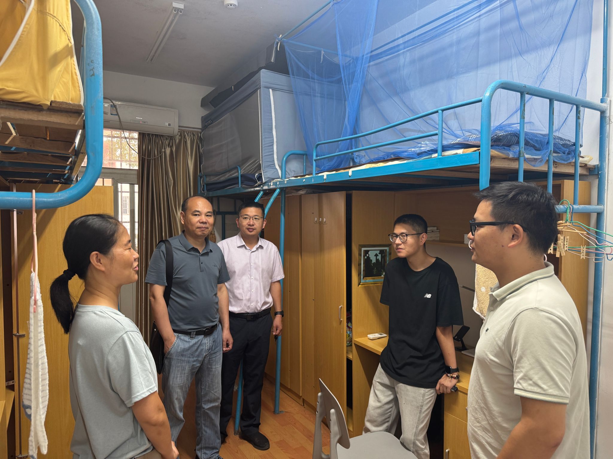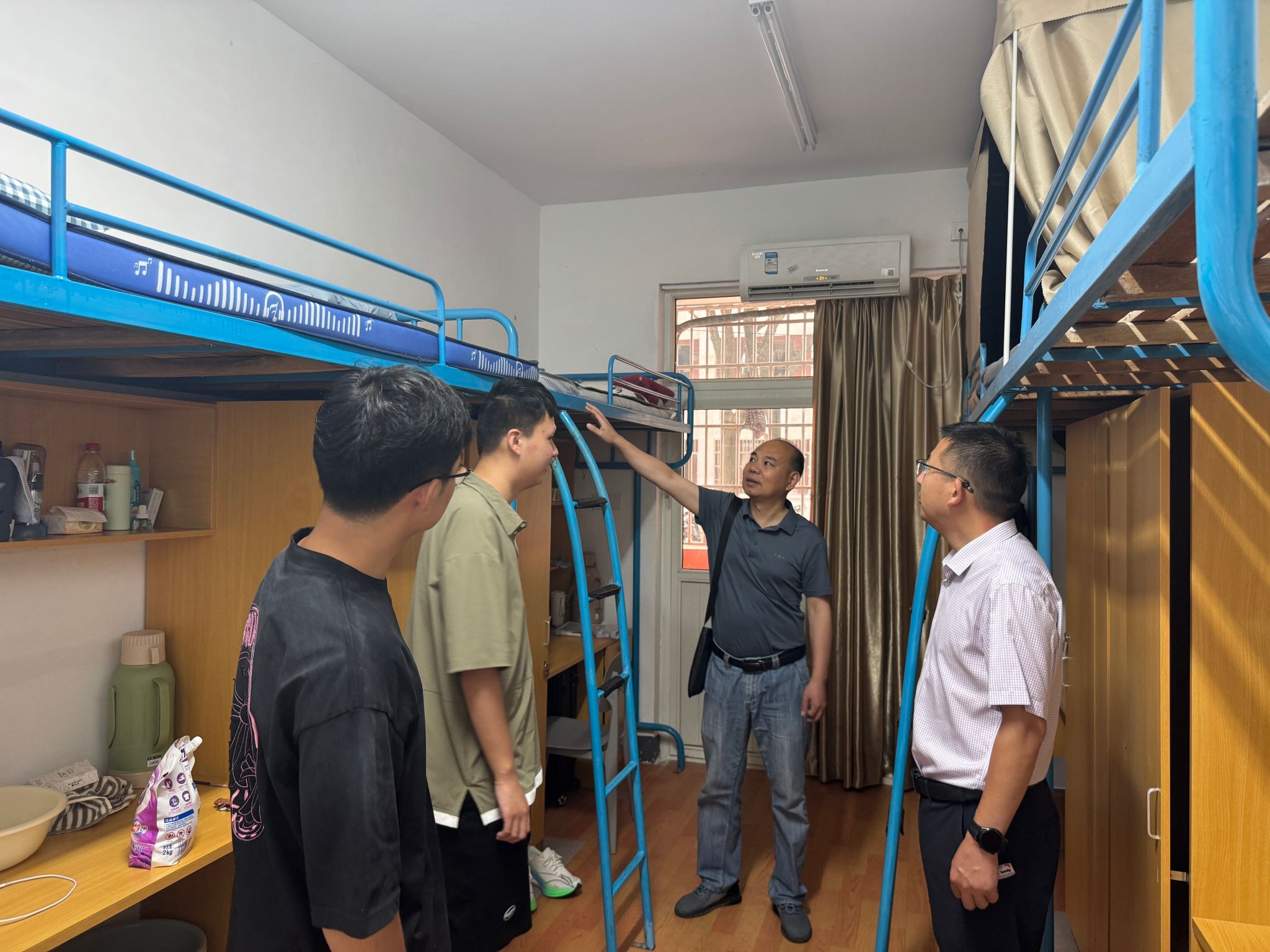 9月7日上午,王国平、钱彬彬与2025级新生辅导员、学生工作秘书一同走访新生宿舍。老师们与新生亲切交谈,细致查看住宿环境,询问其生活适应情况及需协调的困难,并重点嘱托:一要锚定学习目标,尽快适应大学节奏,夯实专业基础;二要关注身心健康,合理作息、勤运动强体魄,以良好状态投入校园生活;三要主动融入集体,与室友友好互助、共同成长。暖心嘱托让新生在陌生环境中感受“家的温暖”,进一步增强对学院的归属感。