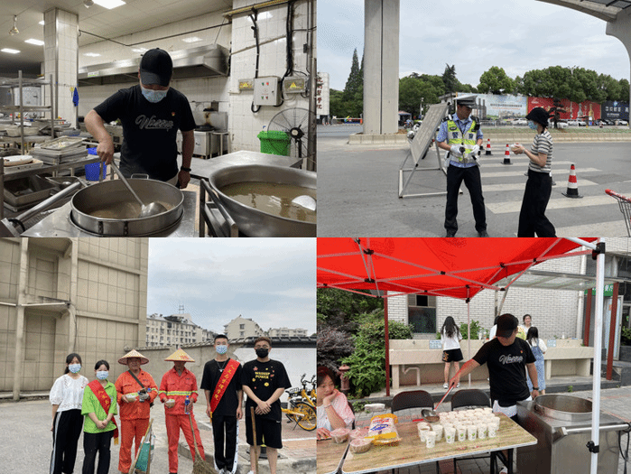 6月8日下午,学生第一党支部开展了“走一线,办实事——慰问环卫、安保人员暨爱心助考”慰问活动。中午13:30,参加活动的学生党员们在食堂集合,和食堂工作人员一起熬煮并打包绿豆汤,慰问小组于15:30从学校出发,先后前往校园保卫岗、侨鸿广场环卫工人点以及轻轨线路铺设工地给保安、环卫人员以及工人送去解暑物品和绿豆汤,他们纷纷表示感谢。正式开展活动前,支部党员代表已与安师大附中考点爱心助考交警进行交流,在确认不打扰交警的正常工作、不影响高考的情况下展开爱心助考活动。小组沿银湖南路对执勤交警进行慰问活动,同时也与考场外的考生家长进行亲切交流,帮助家长缓解焦虑情绪,为他们送去解暑物品。