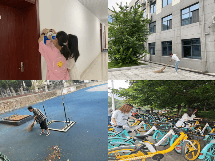 6月10日下午,“净化校园”活动伴着蒙蒙细雨在一群劳动身影中开展,学生党员们对5号教学楼以及校园内柏油路进行清扫,协助校内保洁人员打扫场地,并对校门外共享单车以及校内违规摆放车辆整理,打造整洁校园。