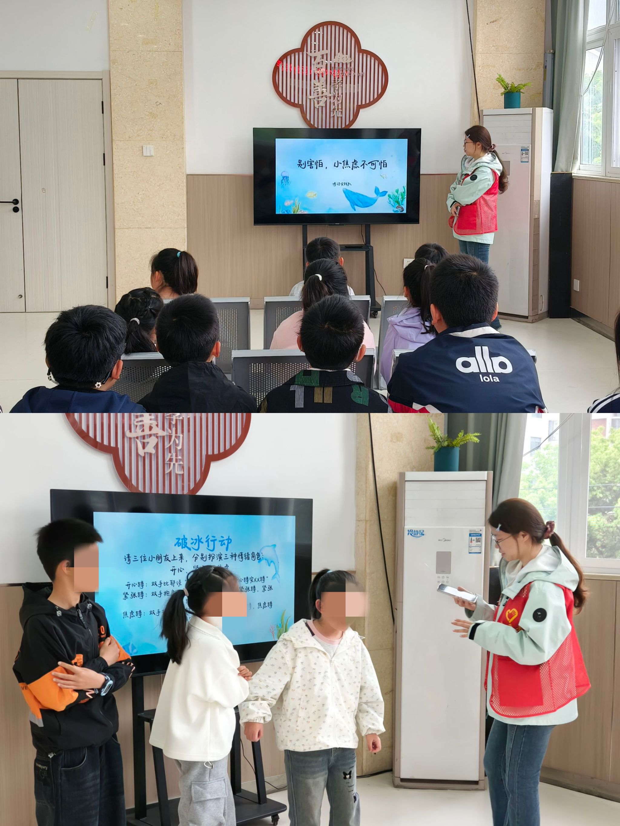 随后,志愿者们结合生动形象的动画视频和贴近生活的现实案例,向孩子们通俗易懂地讲解了什么是焦虑、焦虑可能带来的身心反应,以及如何识别自己是否处于焦虑状态。通过一个个熟悉的生活场景,孩子们逐渐认识到:焦虑并不可怕,关键在于学会与它相处。